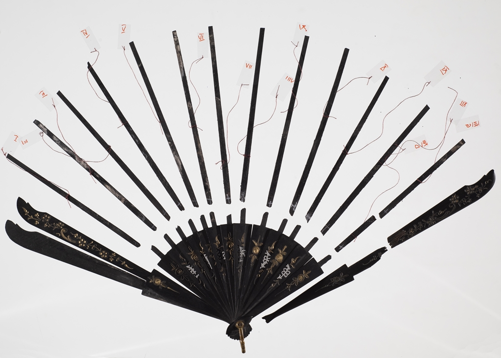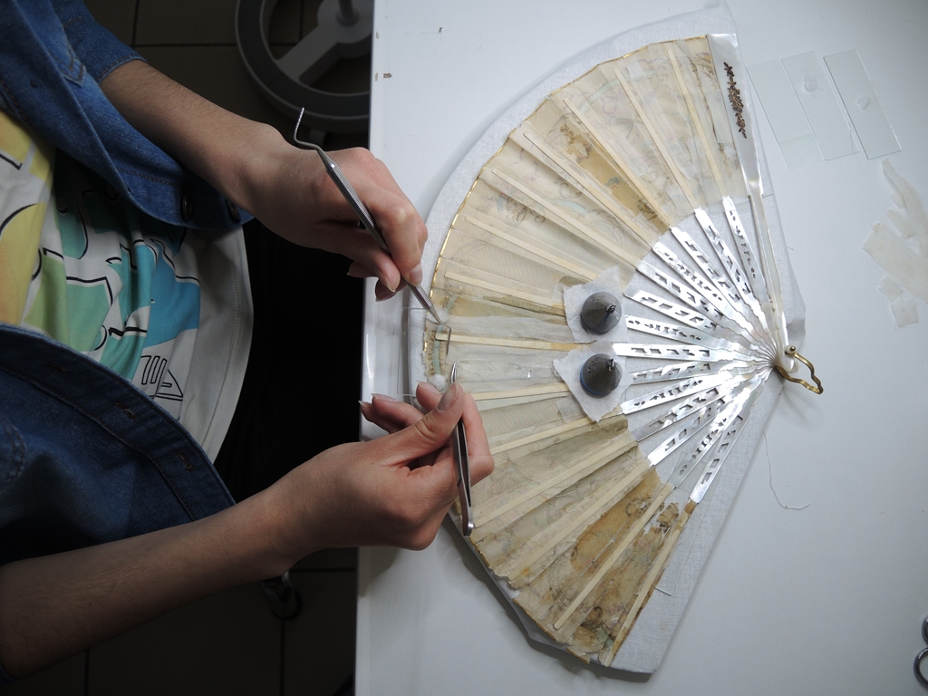 W ramach mojej pracy magisterskiej wykonałam konserwację-restaurację dwóch wachlarzy z przełomu XIX i XX wieku. Należą one do tej samej grupy akcesoriów mody, lecz problematyka ich konserwacji była różna ze względu na odmienne materiały, technikę wykonania oraz zniszczenia w obu wachlarzach. Złożona budowa obu zabytków wymagała zdobycia wiedzy z innych dziedzin konserwacji: drewna, metalu, złoceń, papieru, akwareli, kości, masy perłowej. Wybór wachlarzy na obiekty dyplomowe odpowiadał moim zainteresowaniom modą.