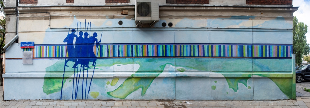 The subject of the degree piece was a mural – Stilt walkers by Linas Domarackas – located on the wall of the tenement house in the Praga Północ district of Warsaw.