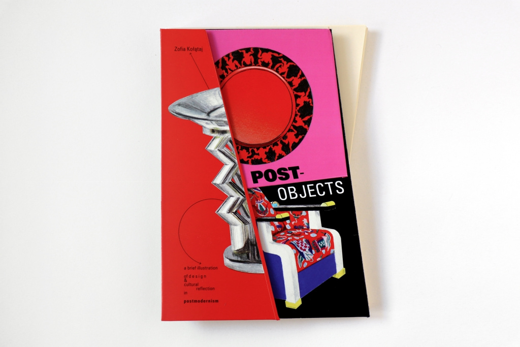 In POST-OBJECTS, I wanted to create a book object which would present and interpret with its form a phenomenon that intrigues me: postmodernism and its design. I present selected design and theoretical achievements without evaluating them in respect of the time or the response they evoked. The selected topic allowed me to explore/deconstruct the three-dimensional book as an object where each element is a part of a selected visual story. Along with original manual illustrations, the book presents an eventful and slightly nostalgic story where each presented object is treated with adequate individualism. The text part was a huge challenge for me – along with the complexity of the topic and our current distance towards it, the creation of content was very engaging.