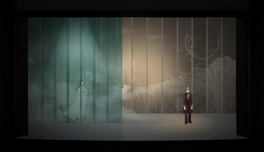 The moth is interpreted as a symbol of the transformation of life into a new form and quality. This association occupied my mind when I was designing the grotesque world of Dance of the vampires slightly permeated with darkness. Photographs of found collections of burial clothing became an inspiration for the search for forms and structures. When creating textiles, I tried to make them look like overexposed “remains”. Using combinations of unconventional and precious materials for the creation of textiles, I came up with very diverse structures in shades of black. The textiles created by me are an important part of the design, serving as a real presentation of the image of vampires with the constant use of monochrome. Their costumes are a variation on various epochs and on fashions prevalent in those times.